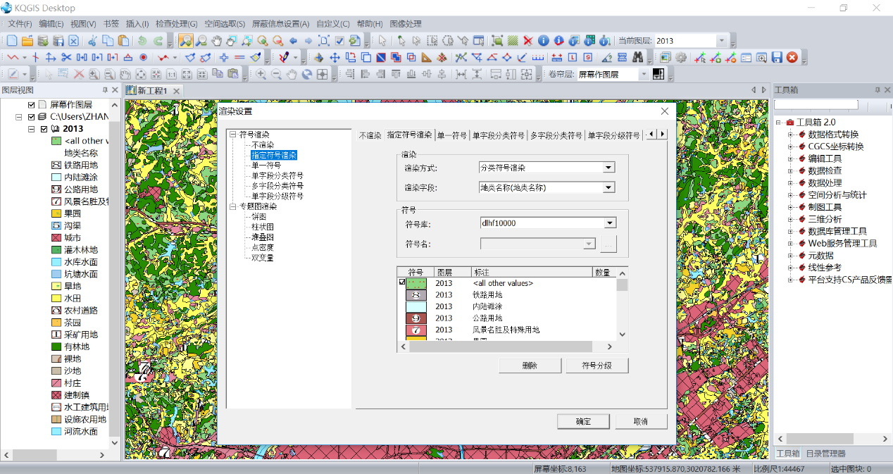 KQGIS Desktop采用多種地圖渲染方式,提供豐富的符號(hào)化表達(dá),線型、顏色、文字的渲染極具美觀性。