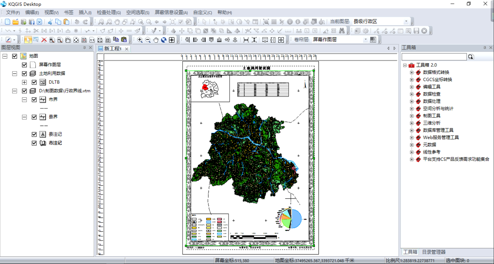 KQGIS Desktop采用組件化的制圖模式,提供所見即所得的地圖排版和打印輸出功能,利用制圖向?qū)Ш皖A(yù)定義模板幫助用戶制作出高品質(zhì)的地圖。