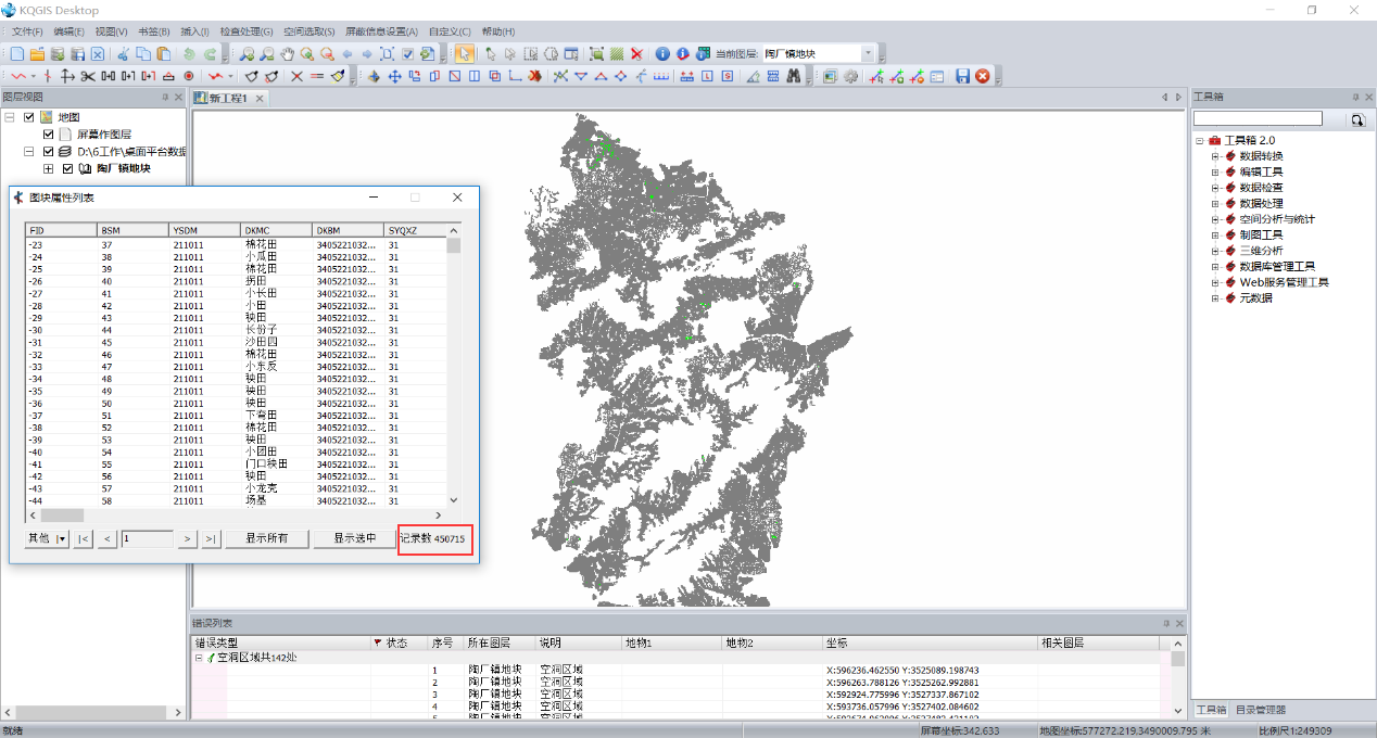 KQGIS Desktop支持高效的數(shù)據(jù)質(zhì)量檢查與批量處理,具備完善的數(shù)據(jù)檢查方案,支持?jǐn)?shù)據(jù)錯(cuò)誤的手工及批量處理,工作效率高。
