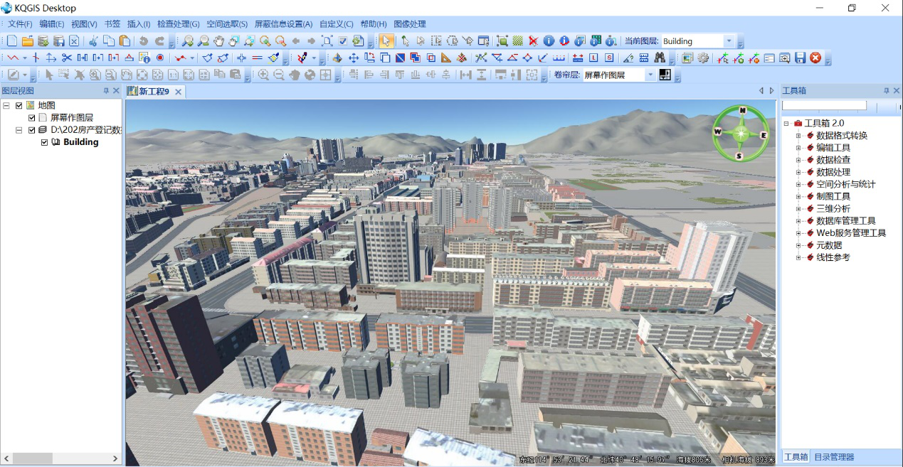KQGIS Desktop采用二三維一體化技術(shù),將傳統(tǒng)的二維數(shù)據(jù)應(yīng)用延伸到三維精細(xì)化管理,從底層數(shù)據(jù)建設(shè)到上層業(yè)務(wù)應(yīng)用全面覆蓋,實(shí)現(xiàn)了數(shù)據(jù)、場景管理、操作、服務(wù)、可視化、分析等方面的二三維一體化,同時(shí)融入了傾斜攝影、BIM、激光點(diǎn)云等三維技術(shù),實(shí)現(xiàn)了從地上地下一體化、空中與地表一體化到室內(nèi)與室外一體化、宏觀與微觀一體化的深入發(fā)展和轉(zhuǎn)變。