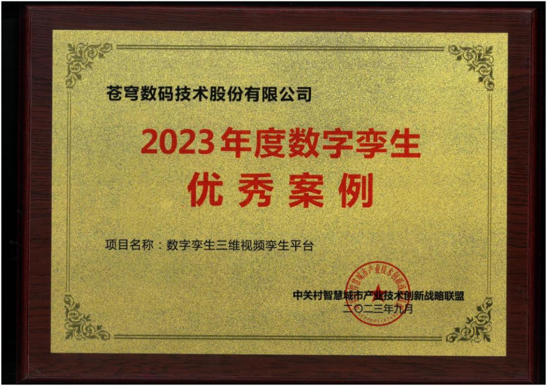 本次論壇上,由蒼穹數(shù)碼承擔的三維視頻孿生平臺項目,經(jīng)相關行業(yè)領域?qū)<以u審,獲得“2023年度數(shù)字孿生優(yōu)秀案例獎”。