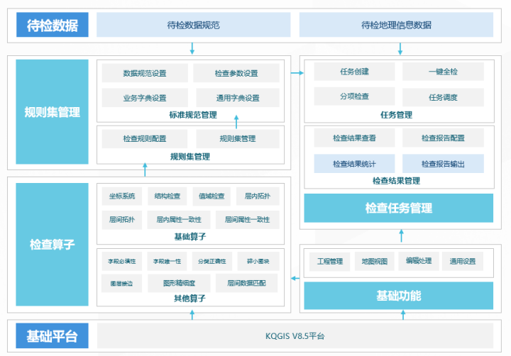 蒼穹地理信息數(shù)據(jù)質(zhì)量檢查系統(tǒng)基于KQGIS平臺自主研發(fā),旨在對各類二三維地理信息數(shù)據(jù)進行高效準確的質(zhì)檢。基于不斷跟進二調(diào)、三調(diào)和持續(xù)十多年的變更調(diào)查服務,以及持續(xù)支撐國土空間規(guī)劃、實景三維等強GIS應用,積累形成豐富的空間、屬性檢查算子,面向各類地理信息數(shù)據(jù)規(guī)范化質(zhì)量檢查要求,實現(xiàn)基于算子的檢查規(guī)則靈活配置與規(guī)則集構建管理,對二三維地理信息數(shù)據(jù)進行高效檢查和結果輸出。