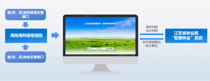聚焦既往土地和林地管理分散、多窗口審批致使群眾來回奔波、耗時漫長的難題,對接打通江蘇省用途管制一體化審批系統(tǒng)與江蘇省林業(yè)局“智慧林業(yè)”系統(tǒng),實現報件材料、補正意見、業(yè)務審核意見等數據的雙向共享和業(yè)務聯(lián)動,面向省及省以下批準農用地轉用、城鄉(xiāng)建設用地增減掛鉤和審核林地許可事項,全面實行用地用林合并審批。以江蘇省用途管制一體化審批系統(tǒng)為主體,進行用地用林組卷報批,統(tǒng)一上傳用地用林審批材料,并將使用林地審核材料推送至“智慧林業(yè)”系統(tǒng),審核出具用林審查意見后,將審批結果通過數據交換接口返回至江蘇省用途管制一體化審批系統(tǒng),實現統(tǒng)一接件、統(tǒng)一補正、并聯(lián)審批、統(tǒng)一批文,為群眾和企業(yè)提供更為便捷、高效的服務體驗。
