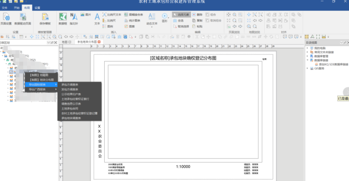 軟件支持多類型報(bào)表輸出,包含承包地是否基本農(nóng)田匯總表、承包方匯總表、承包土地用途匯總表、地塊匯總表、承包地地塊類別匯總表、證信息匯總表;同時支持多種圖件批量輸出,如批量生成宗地圖、分幅地籍圖、確權(quán)登記宗地圖、農(nóng)戶承包地塊平面圖、確權(quán)登記公示圖、承包地塊分布圖、承包地塊示意圖等,為決策支持提供快速有力的支撐。