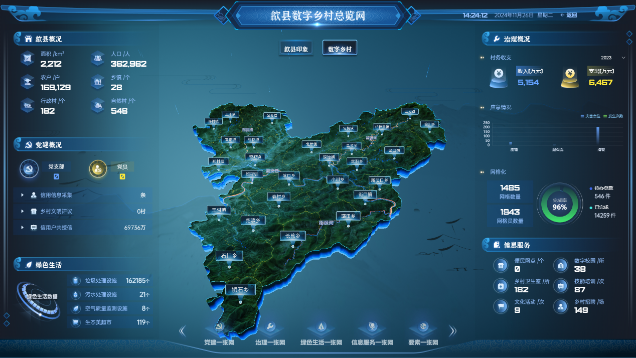 1、“一張網(wǎng)”融合貫通:平臺打破傳統(tǒng)鄉(xiāng)村治理中信息孤島、條塊分割的困境,深度整合基層黨建、網(wǎng)格管理、人居環(huán)境整治、應(yīng)急管理、民生服務(wù)、產(chǎn)業(yè)發(fā)展等多領(lǐng)域、多部門的數(shù)據(jù)資源與業(yè)務(wù)流程,構(gòu)建起統(tǒng)一指揮、高效協(xié)同的“鄉(xiāng)村治理智慧大腦”。