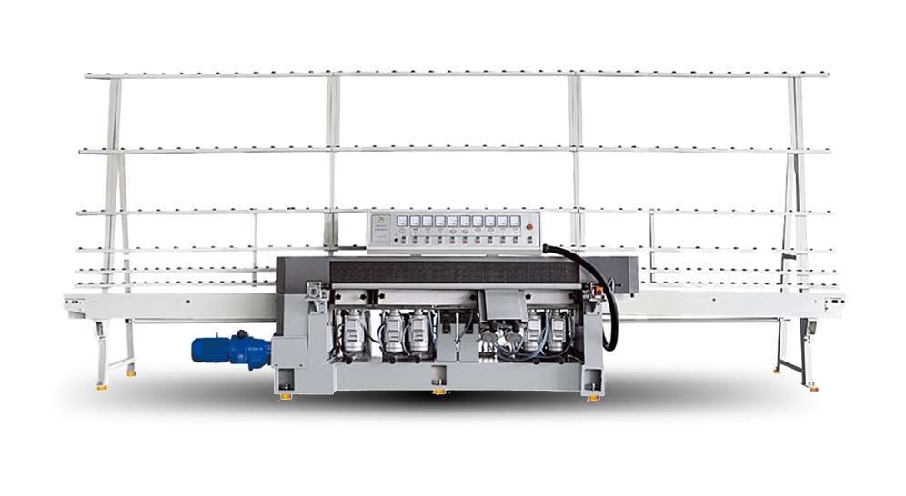 該機用于平板玻璃的底邊及棱角的磨削和拋光。采用特殊伸縮壓板,可磨削不同厚度的玻璃。本機操作簡單,控制可靠,前導(dǎo)軌可平行移動,夾持玻璃方便可靠,倒角磨輪采用托板,磨削時無震動,其中9325P機型帶有單獨羊毛拋光可保證拋光亮度高,切削分配合理,加工成本低,質(zhì)量穩(wěn)定。各種機型均可選用ABB電機。